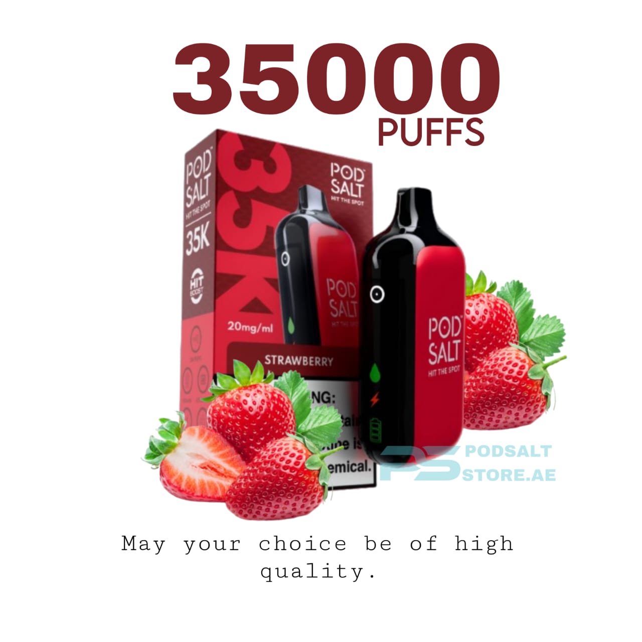Experience the perfect balance of sweetness and satisfaction with the Podsalt 35000 Puffs Strawberry Disposable Vape. Designed for both flavor lovers and long-lasting performance, this premium disposable device delivers a burst of fresh, juicy strawberry with every puff. Whether you’re on the go or simply relaxing, this vape ensures a smooth, flavorful, and consistent experience without the hassle of refilling or charging too often.